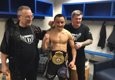A very happy ZZ @WBABoxing Bantamweight super world champion @boxnationtv @frankwarren_tv @stevelillis @bigdaddybunce @KazakhEmbassy pic.twitter.com/JwfdR2GZqx