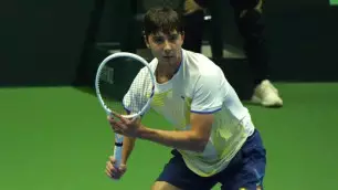 Встреча завершилась поражением казахстанского теннисиста со счётом 0:6, 3:6.