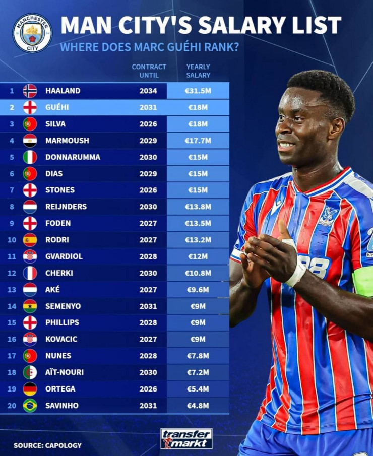 Больше в "Манчестер Сити" получает только нападающий Эрлинг Холанд. Его оклад – 31,5 миллиона евро за сезон.