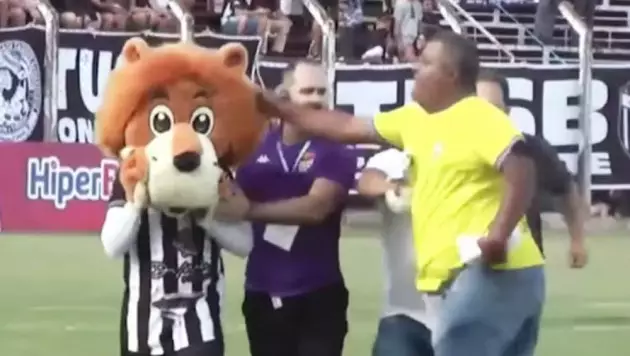 Во время перерыва, когда хозяева лидировали 3:0, человек в костюме льва по имени Бруну Феррейра да Силва, исполнявший роль талисмана "Барбаренсе", решил подойти к фанатам соперников для разогрева.