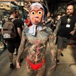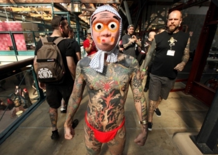 В минувшие выходные в Лондоне в Табачном доке (Tobacco Dock) прошел пятый по счету трехдневный фестиваль тату London Tattoo Convention. На него съехались около 200 татуировщиков со всего мира. Также на фестиваль приехали музыканты, ди-джеи, бурлеск-танцовщицы и просто любители тату. Желающие могли посетить выставки тату, набить себе новую татуировку, поучаствовать в конкурсах или просто послушать выступление исполнителей.