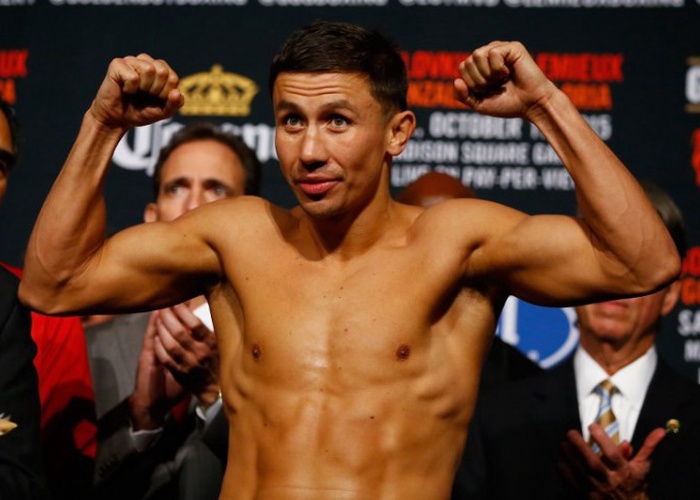 Фото с официальной процедуры взвешивания Головкина и Лемье