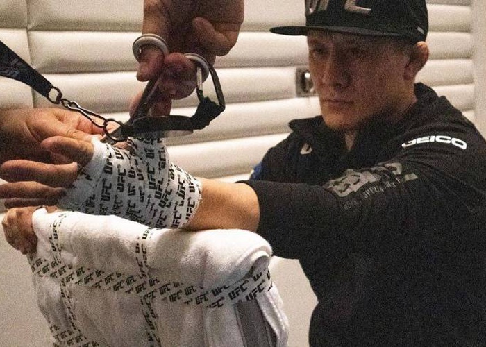 Фото с дебютного боя казахстанца Жалгаса Жумагулова в UFC