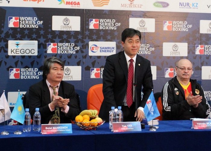 Процедура взвешивания боксеров Astana Arlans и German Eagles