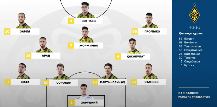 Вот уже пять матчей подряд в стартовом составе выходит сочетание нападающих Дастан Сатпаев - Жоржиньо Монтейру. Понятно, что фукнции у них разнятся - португалец действует в оттяжке и зачастую исполняет роль плеймейкера. Но все же он тоже считается нападающим.