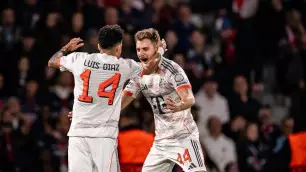 Так, пожалуй, главная сенсация произошла на стадионе "Парк де Пренс" в Париже, где действующий победитель Лиги чемпионов - "Пари Сен-Жермен" проиграл мюнхенской "Баварии" со счётом 1:2. В составе победителей дубль оформил Луис Диас (4-я и 32-я минуты), который в добавленное к первому тайму время был удалён с поля за жёсткий подкат. У парижан отличился Жоау Невеш (74-я).