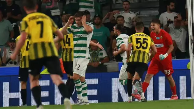 На 34-й минуте Офри Арад перехватил мяч на половине поля "Спортинга" и отдал пас Дастану Сатпаеву. Вундеркинд "Кайрата" мощно пробил с дальней дистанции, и Жоау Виржиниа пришлось демонстрировать своё мастерство.