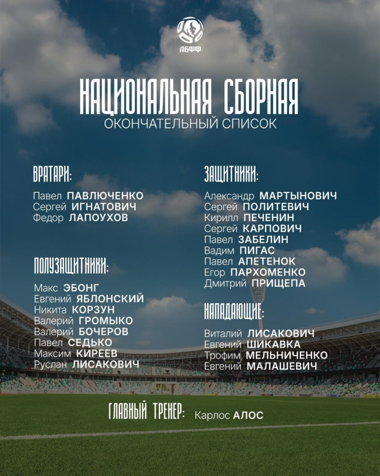 26 мая главный тренер сборной Беларуси Карлос Алос Феррер огласил список из 24 футболистов, которые будут задействованы в подготовке и товарищеских матчах со сборными Казахстана (5 июня) и России (10 июня). Обе игры пройдут в Минске.