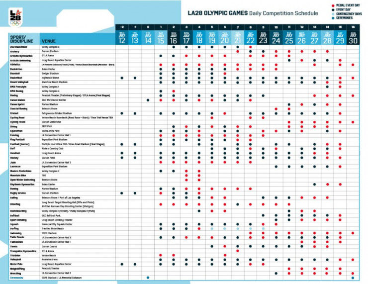 Летние Олимпийские игры-2028 в Лос-Анджелесе пройдут с 14 по 30 июля. Полное расписание доступно по этой ссылке.
