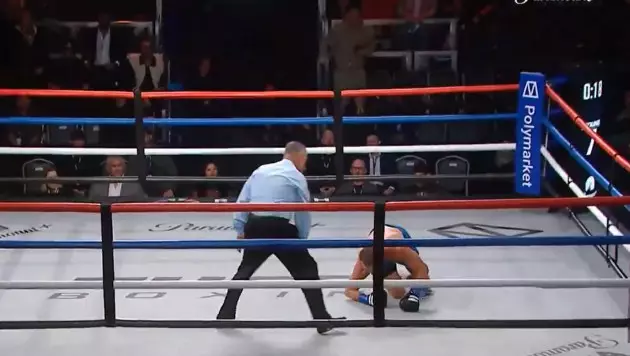 Украинец сумел подняться, но вскоре оказался во втором нокдауне и уже не смог продолжить боксировать, после чего рефери остановил поединок.