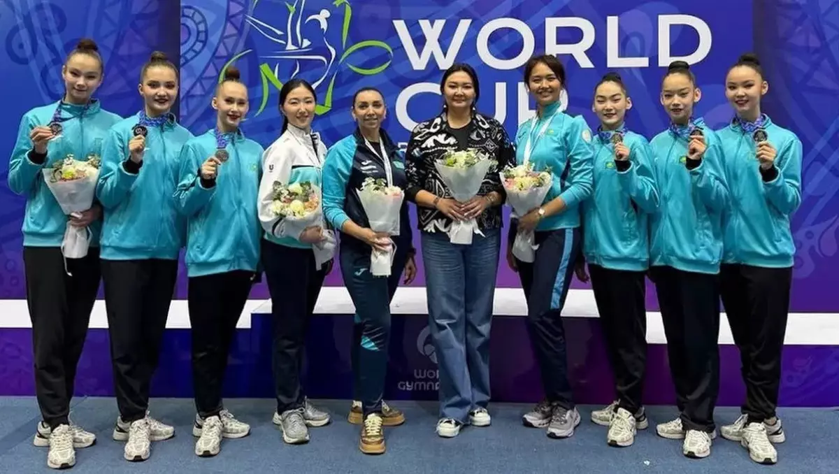 Команда Казахстана по художественной гимнастике поднялась на пьедестал этапа Кубка мира в Ташкенте (Узбекистан), передают Vesti.kz со ссылкой на НОК РК.