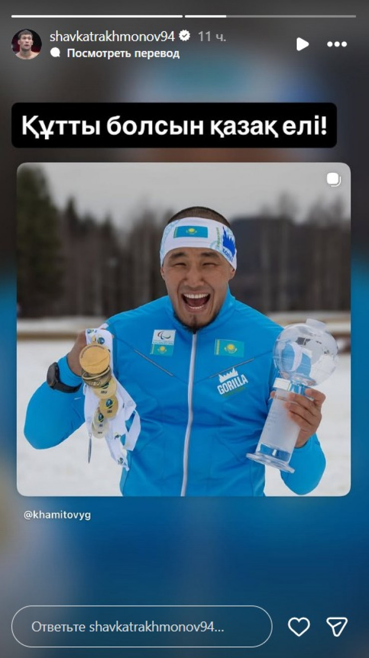 Казахстанский боец UFC Шавкат Рахмонов поздравил соотечественников с медалями Паралимпиады-2026 в Италии, передают Vesti.kz.
