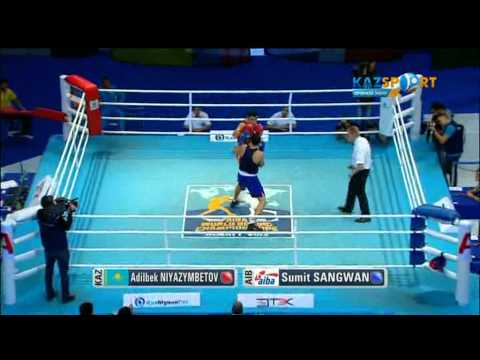 Адильбек Ниязымбетов, выступающий в весовой категории до 81 килограмма, стал восьмым представителем Казахстана в полуфиналах чемпионата мира по боксу. В четвертьфинальном поединке серебряный призер Олимпиады в Лондоне встречался с Сумитом Сангваном из Индии. После трех раундов судьи зафиксировали уверенную победу казахстанского боксера со счетом 30:27, 30:27, 29:28.